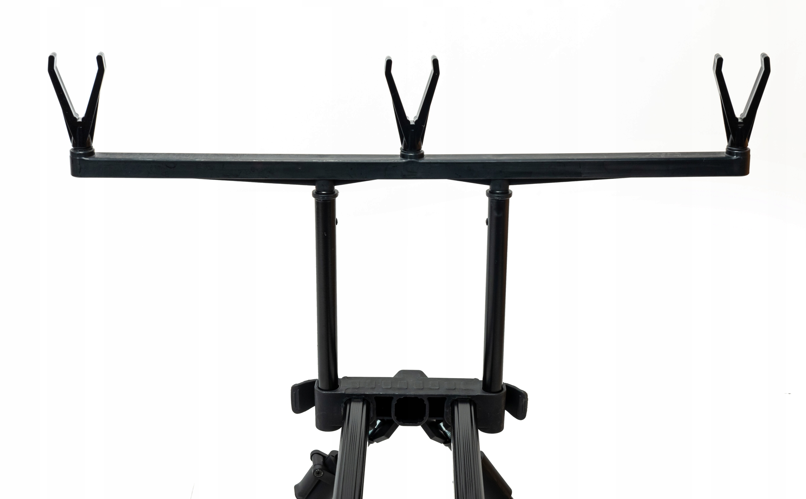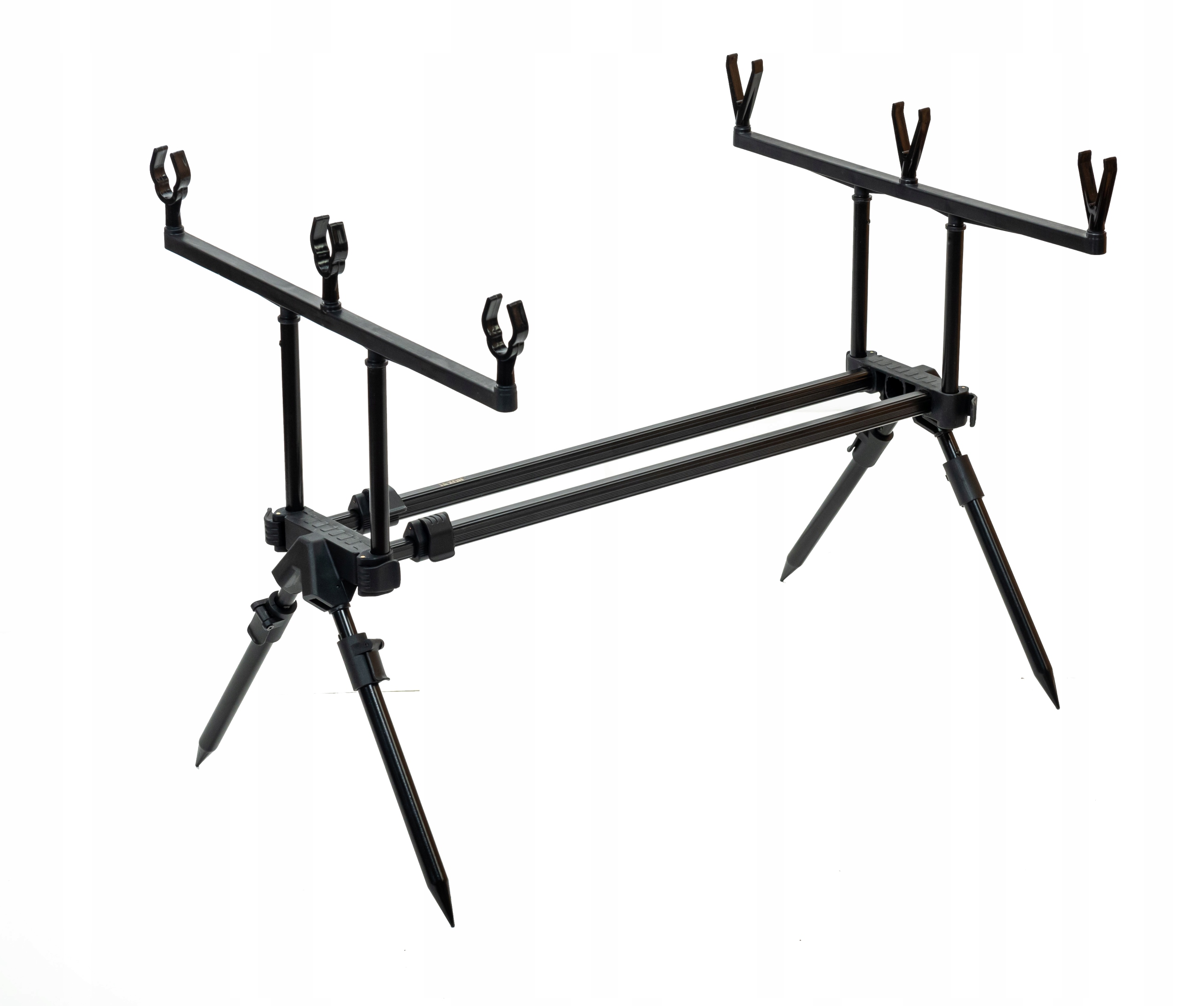 Універсальний rod pod для тих, хто шукає стабільний штатив, з можливістю розміщення до 3 вудилищ одночасно, підставка вбудована на подвійній рамі. Кут нахилу вудилищ можна регулювати декількома способами, в тому числі регулюючи базбари, довжину ніжок і довжину підставки, що дозволяє адаптуватися до будь-яких умов на рибальському угідді. Підставка чорна або темно-зелена, залежно від наявності.