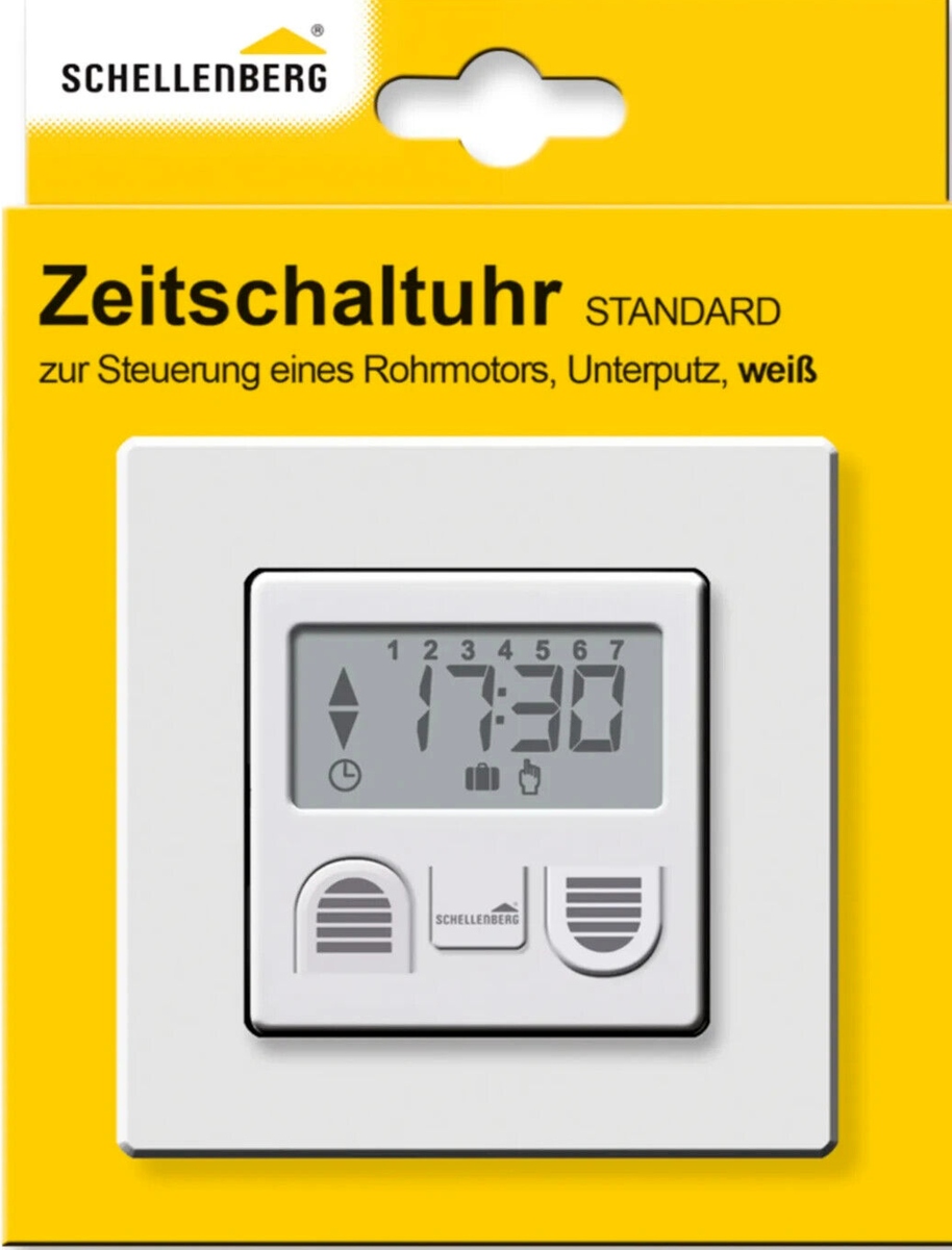- Таймер радіо підходить для цієї мети: сліпої приводки Schellenberg Roller, навіси та гаражні ворота, а також розетки, керовані радіо, вимикачі світла та освітлювальні модулі. Наприклад, жалюзі можна опустити, а вогні в кімнатах одночасно вмикаються в певний час ввечері. Тут практично, що за допомогою комутатора ви також можете програмувати 2 -й керуючі часи, наприклад Вранці, щоб підняти сліпого і ввечері, щоб вимкнути сліпий). 4