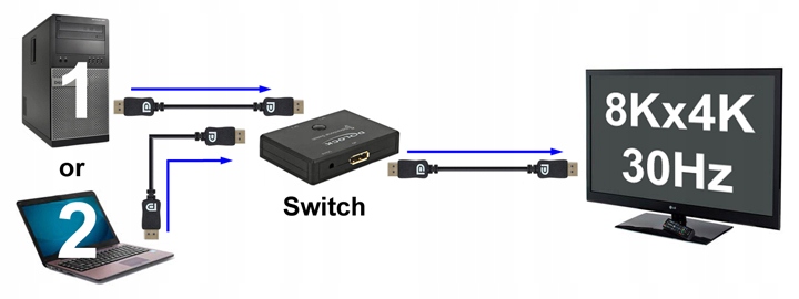 перемикач Два -way Displayport 2Wex1Wi Ultrahd 8KX4K/30HZ Delock