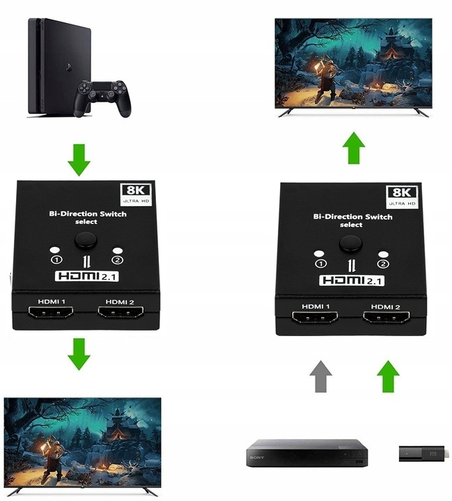 ПЕРЕМИКАЧ HDMI 2.1 2x1 РОЗДІЛЮВАЧ 1x2 8K ДВОНАПРАВЛЕНИЙ
