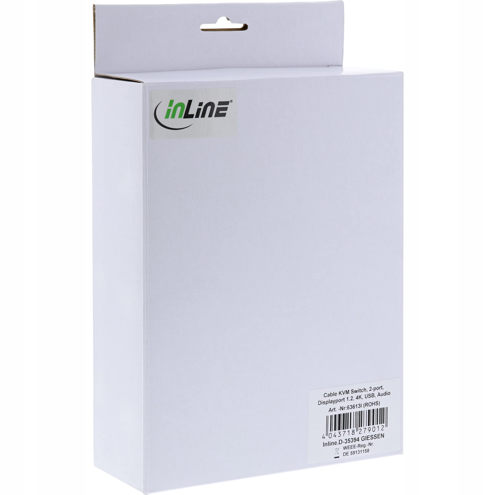 КВМ-перемикач InLine 63613I, 2x, DisplayPort 1.2, 4K, USB, з аудіо, вбудованим кабелем