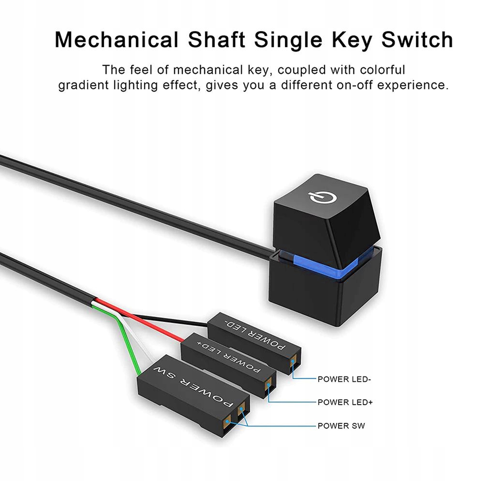 2. Синій перемикач: ця кнопка живлення комп’ютера складається з синього перемикача та механічної клавіші, що забезпечує швидке та чітке натискання клавіш без затримки.