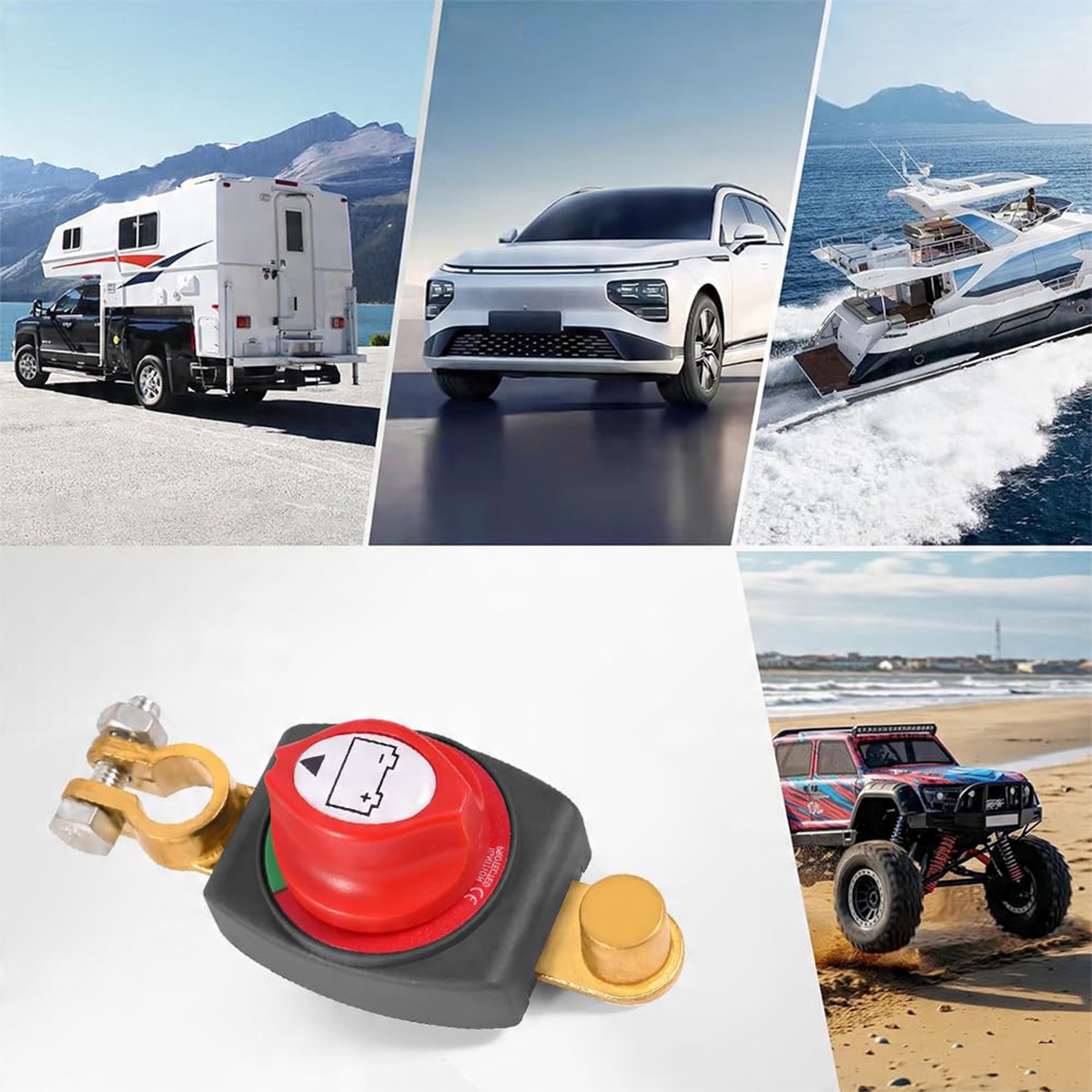 Основний перемикач акумулятора 12 В оснащений водонепроникною конструкцією, яка ефективно запобігає проникненню вологи. Основний перемикач акумуляторів особливо корисний для моря, в дощові дні або в інших вологих умовах, що пропонує більшу надійність.