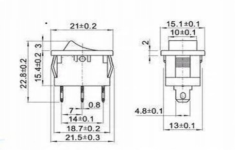 Кулисний перемикач KCD1 є перемикачем ON/OFF. Перемикач має 2 штирі PIN для пайки проводів або вставлення електричного роз’єму 4,8 мм.