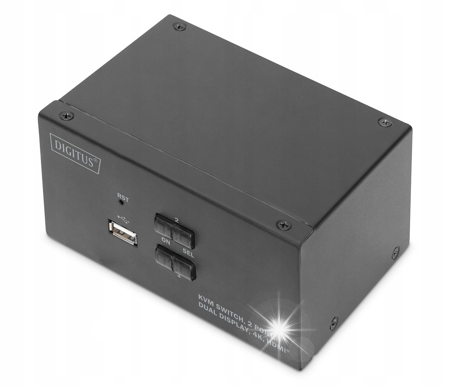 За допомогою 2-портового KVM-перемикача DIGITUS із двома моніторами ви можете керувати двома ПК із підтримкою 4K за допомогою однієї комбінації USB-клавіатури та миші. За допомогою однієї кнопки або гарячої клавіші ви можете легко перемикатися між двома комп’ютерами та позбавити себе від клопоту з підключенням кабелів. Вихід на два монітори здійснюється через два виходи HDMI на задній панелі. Аудіосигнали з мікрофона та динаміка також можна перемикати. Крім того, на передній панелі є USB-порт, який можна використовувати для інших периферійних пристроїв, таких як USB-накопичувачі або зовнішні жорсткі диски на обох комп’ютерах. Підключені периферійні пристрої призначаються активному ПК. Світлодіоди стану на передній панелі комутатора постійно відображають поточну конфігурацію. Перемикач доповнено міцним металевим корпусом.