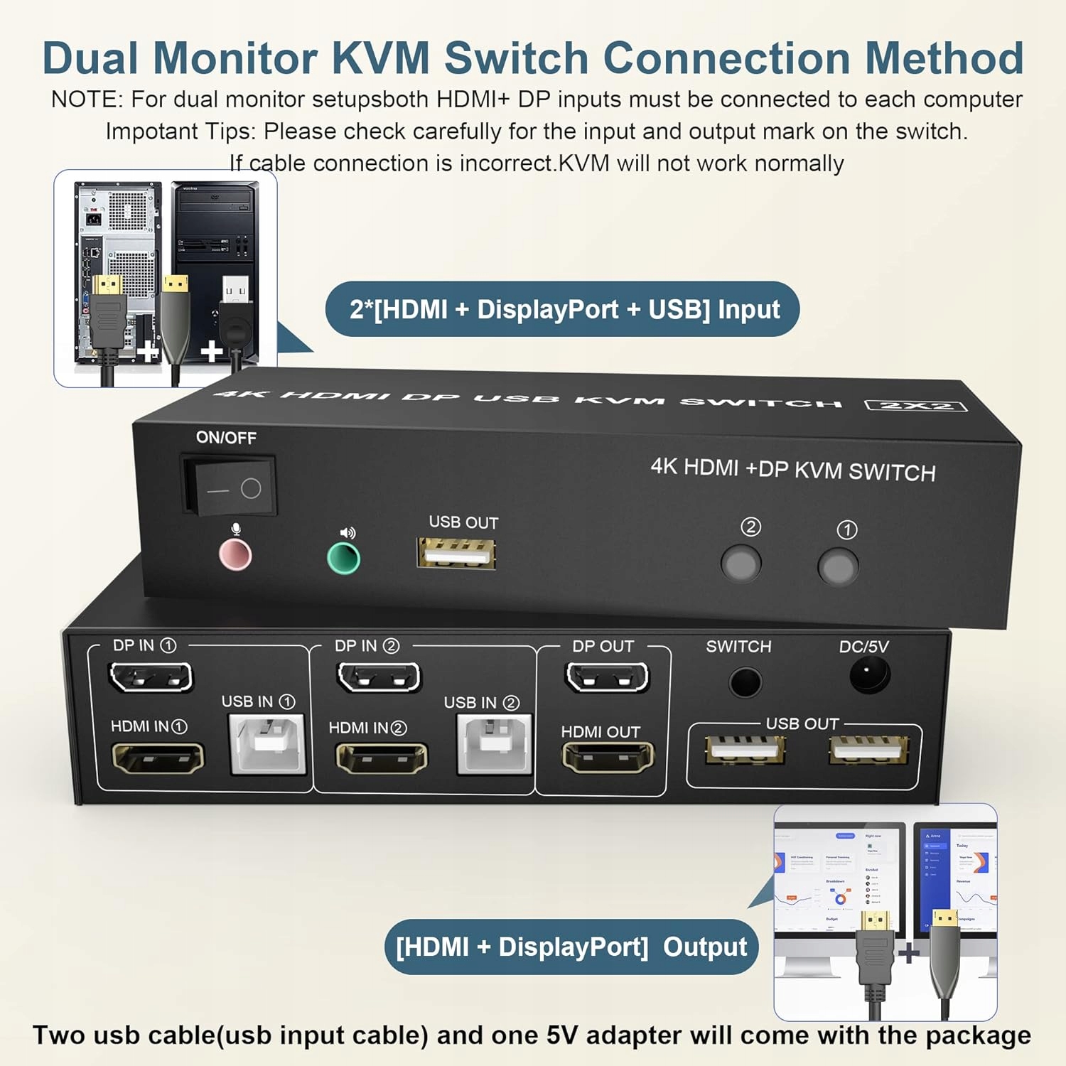- KVM Switch підтримує роздільну здатність 4K при 60Hz
