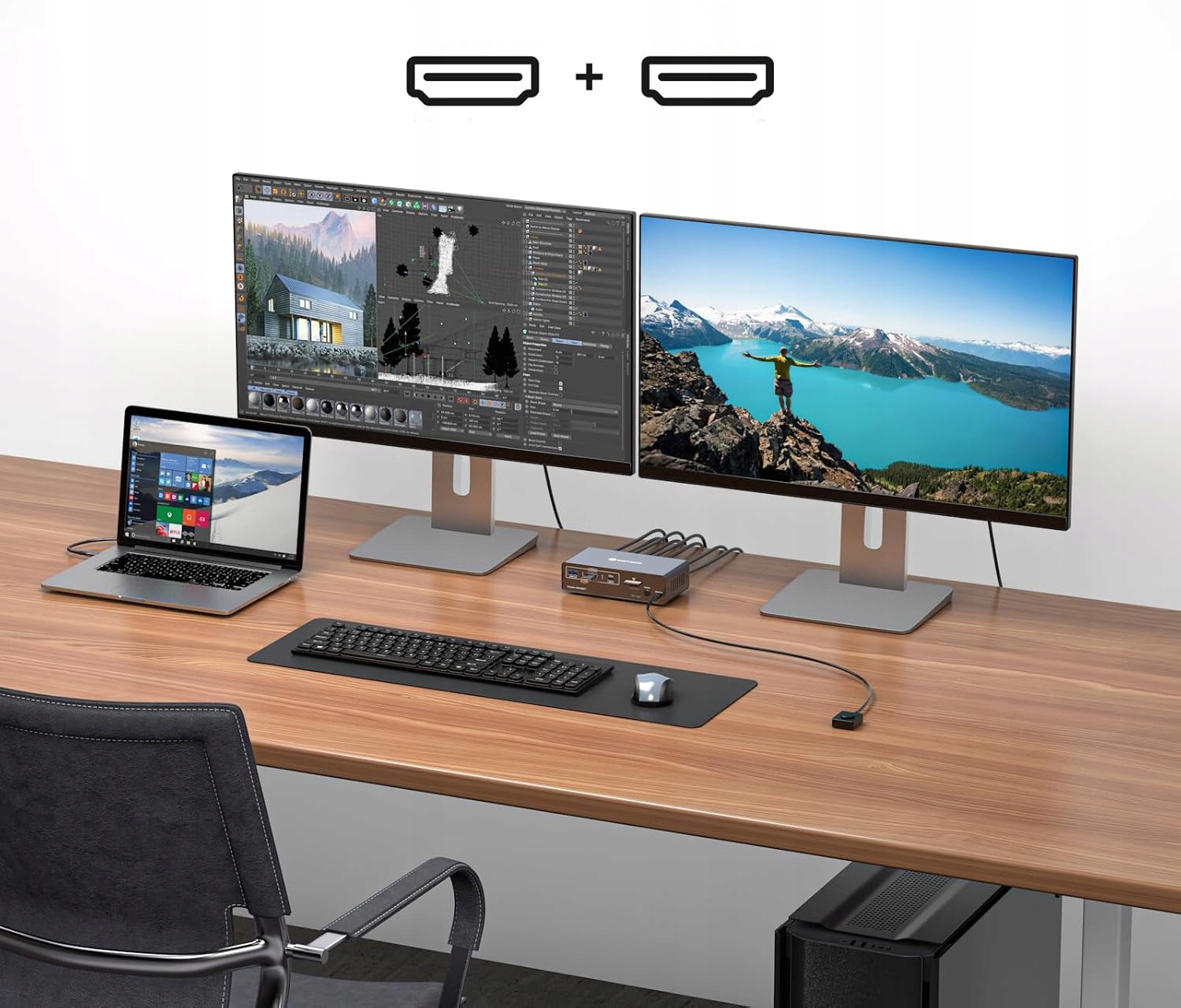 KVM-перемикач із підтримкою 2 моніторів дозволяє одночасно використовувати ноутбук і настільний комп’ютер, спільне використання док-станції 13-в-1. Це дозволяє підключити два монітори з портами HDMI, мишу, клавіатуру, USB-накопичувач, SD-карти та інші пристрої. Плавне перемикання, економія місця та покращення продуктивності та взаємодії з користувачем є ключовими функціями цього пристрою. Не забудьте: 1. Переконайтеся, що порт C вашого ноутбука підтримує потокове відео; 2. Настільний комп’ютер повинен мати два порти HDMI; 3. Порт USB-C не підтримує заряджання ноутбуків (немає функції заряджання PD).