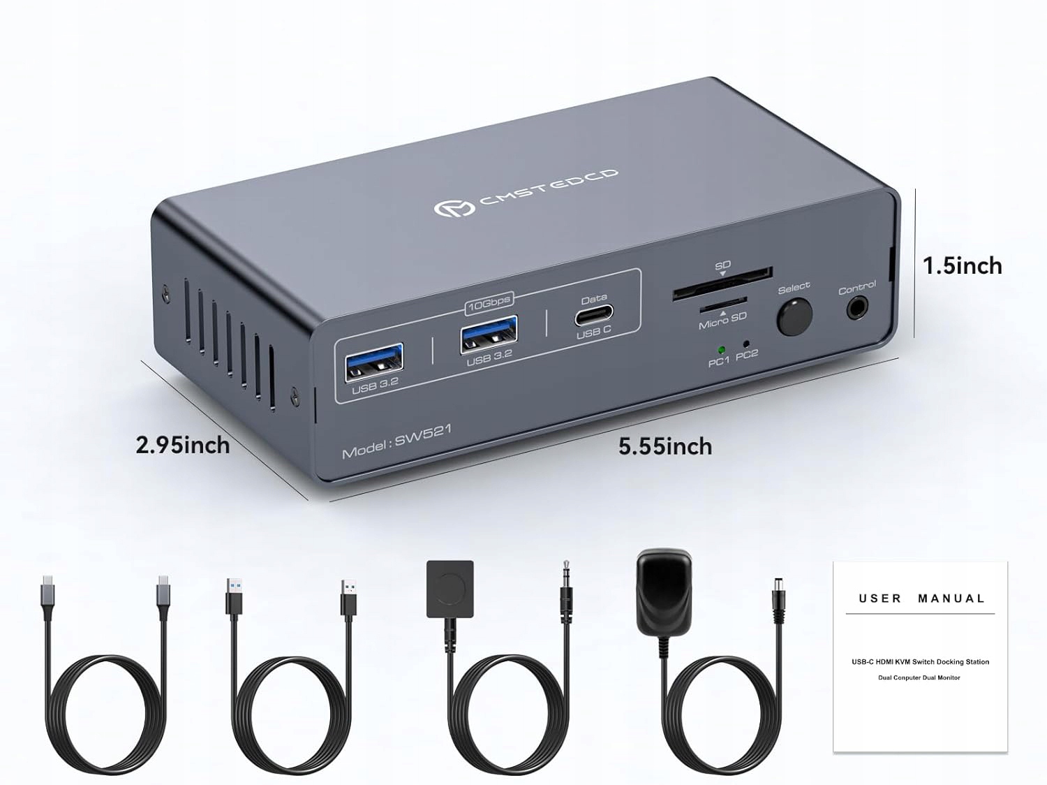 KVM-перемикач із підтримкою 2 моніторів забезпечує роздільну здатність до 4K60Hz, що дозволяє передавати відео найвищої якості. Він сумісний із роздільною здатністю 2K144Hz, 1080P тощо, а також пропонує функцію EDID. Немає необхідності змінювати робочий стіл після швидкого перемикання. Підтримує режими копіювання та розширення відображення (для Windows підтримуються SST та MST відповідно). Розширений роз’ємами USB 3.2 і USB-C зі швидкістю передачі до 10 Гбіт/с, він полегшує роботу з такими пристроями, як флеш-накопичувачі та концентратори. Він також дозволяє легко копіювати дані за допомогою слотів для карт SD і micro SD. Стабільну роботу пристрою забезпечує блок живлення KVM 12В/1,5А.