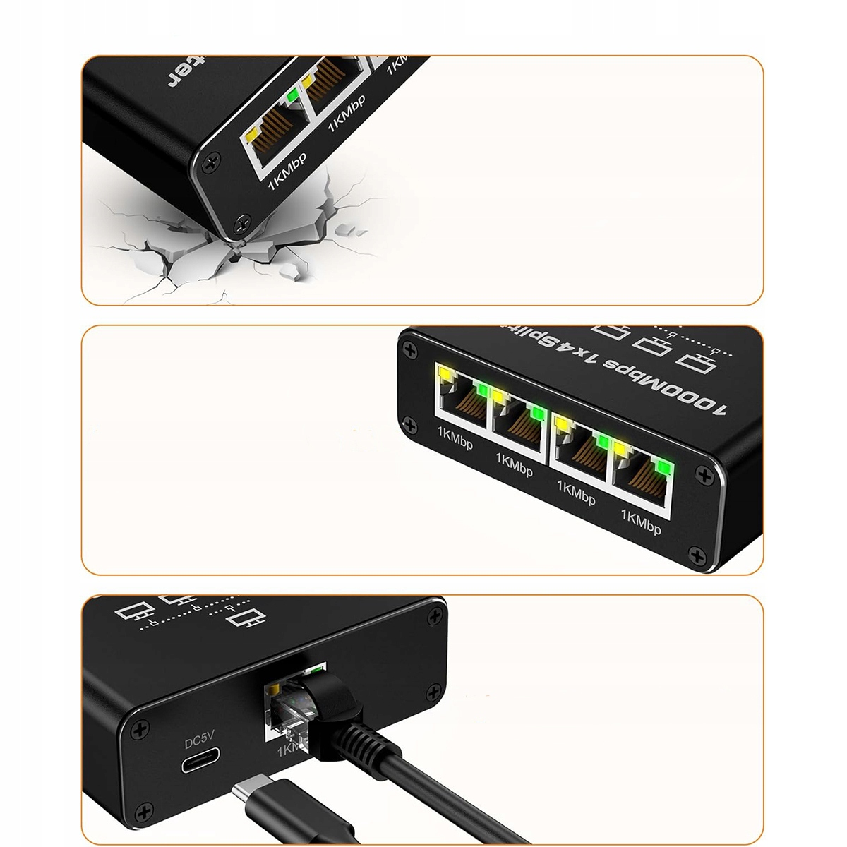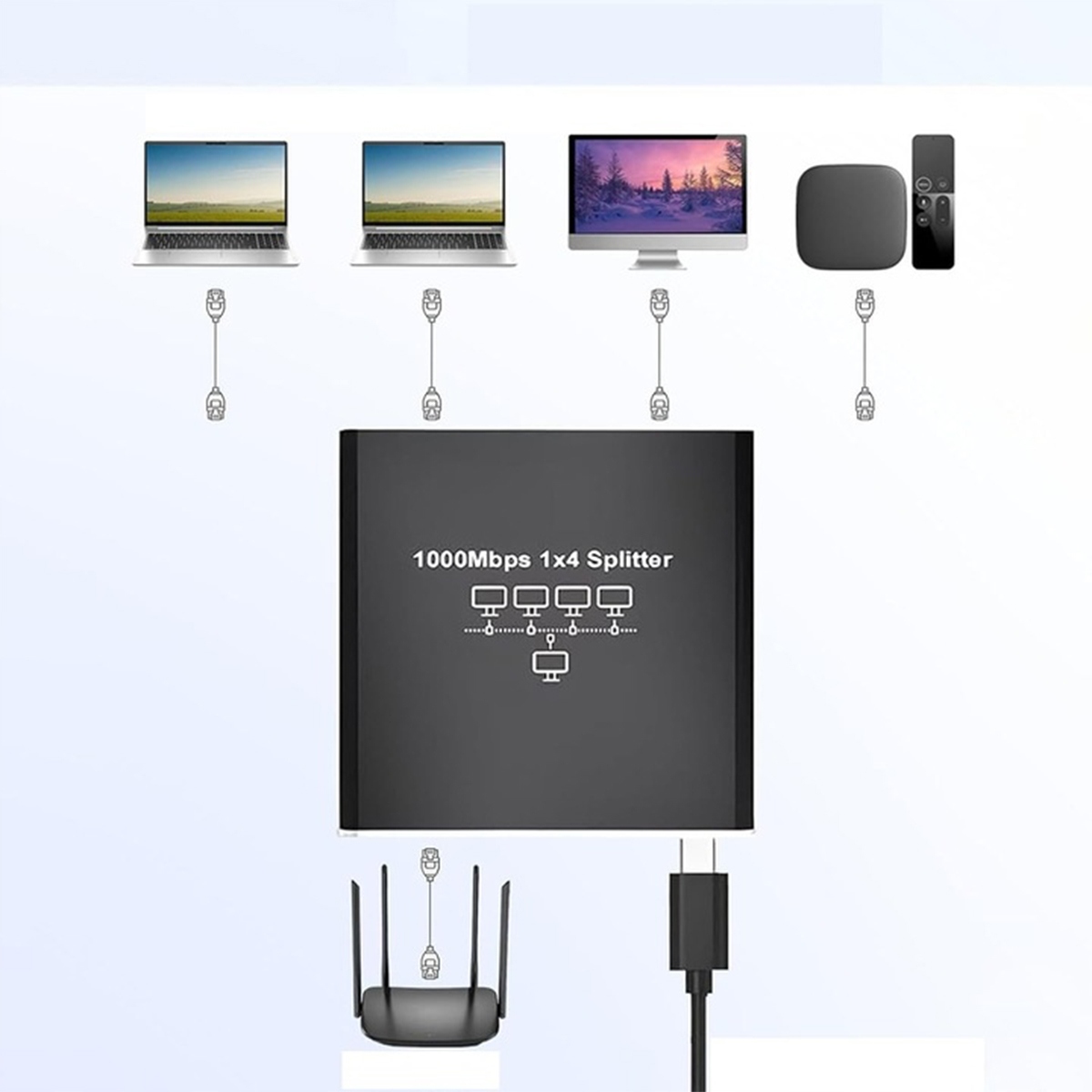 Сплітери Gigabit Ethernet 1–4 дозволяють розширити одну лінію Ethernet для одночасного підключення кількох пристроїв. Завдяки швидкості до 1000 Мбіт/с цей спліттер забезпечує стабільну та швидку передачу даних. Примітка. Для оптимальної продуктивності живлення має подаватись через USB-кабель із комплекту постачання. Ідеально підходить для вирішення проблем із підключенням, спричинених недостатньою кількістю кабелів у вашому домі, офісі чи промисловому середовищі.
