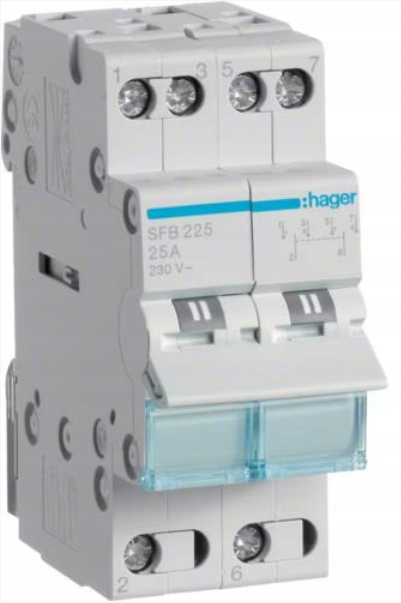 - Модульний інсталяційний вимикач I-0-II SFB225 забезпечує зручне керування освітленням та електричними пристроями