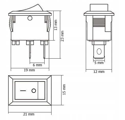 Перемикач колиски KCD1 - чорний - 21x15mm - Увімкнення/вимкнення 250 В - 2pin