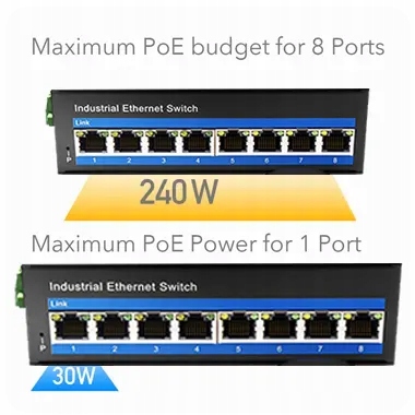 - 8-портом POE, службою 802.3at/af, макс. IP40