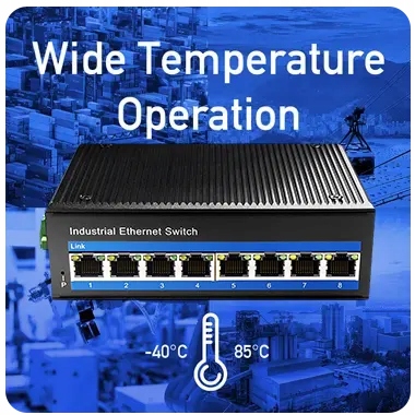 Ethernet IG1008P промислові вимикачі були розроблені з широкою температурною підтримкою, щоб забезпечити надійність роботи при екстремальних температурах від -40 ° C до 85 ° C. Виготовлений з високоякісного металевого корпусу, довговічного та довговічного, з довгим життям, забезпечує кращу відволікання тепла, придатне для більшості середовищ.
