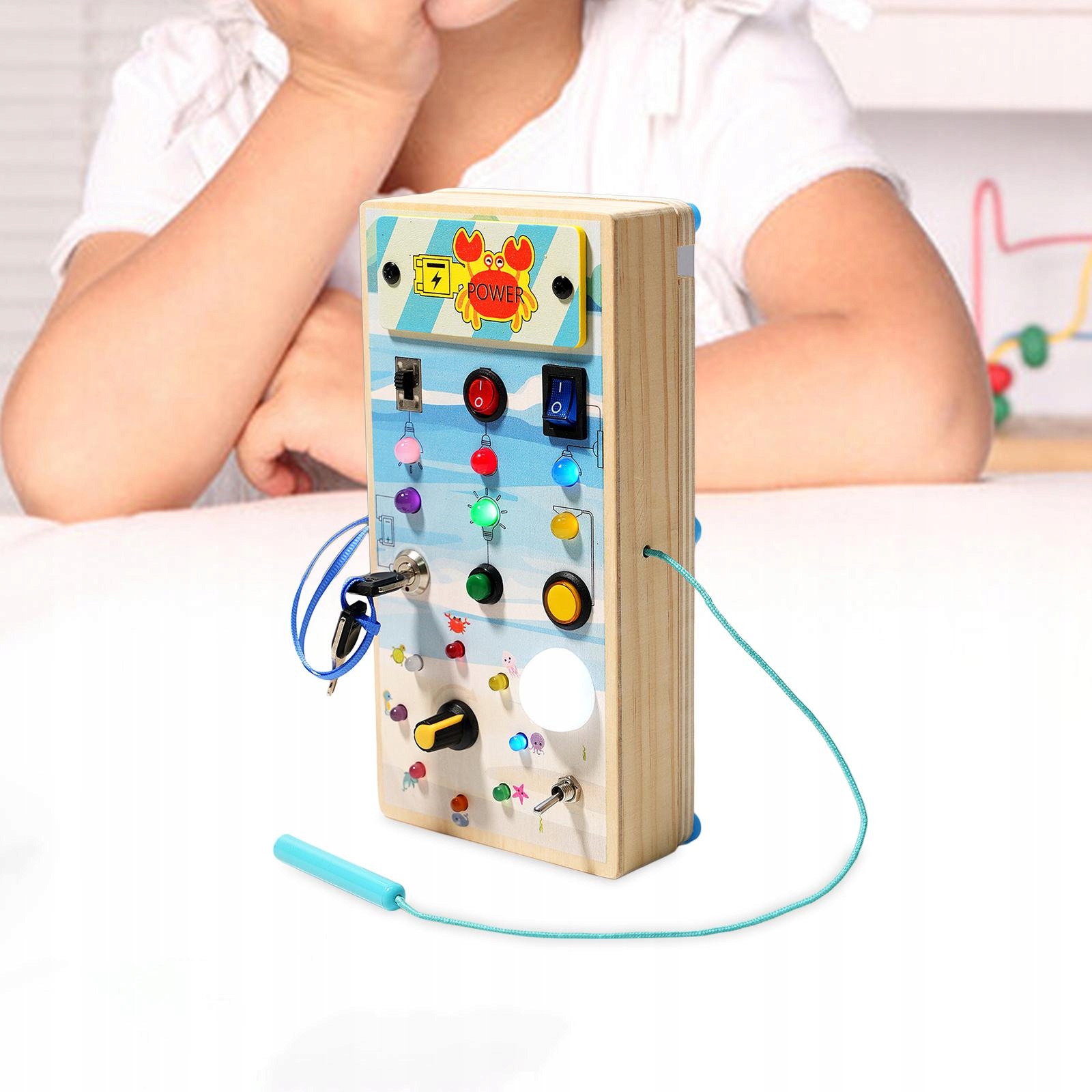 [Дошка Busy для малюків]Дошка Lights Switch Busy містить лампочки та вимикачі різних кольорів і розмірів, ручки-перемикачі тощо.