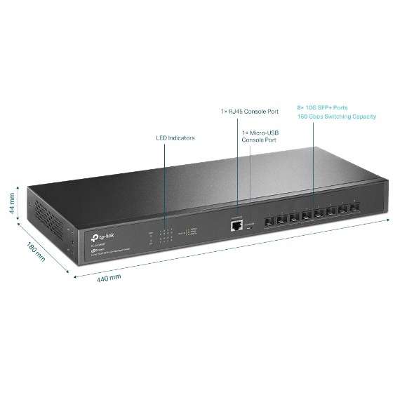 - Швидкі порти 10G: 8 SFP+ слотів на 10 Гбіт/с для високої пропускної здатності та комутації продуктивність 160 Гбіт/с у безблоковому режимі.