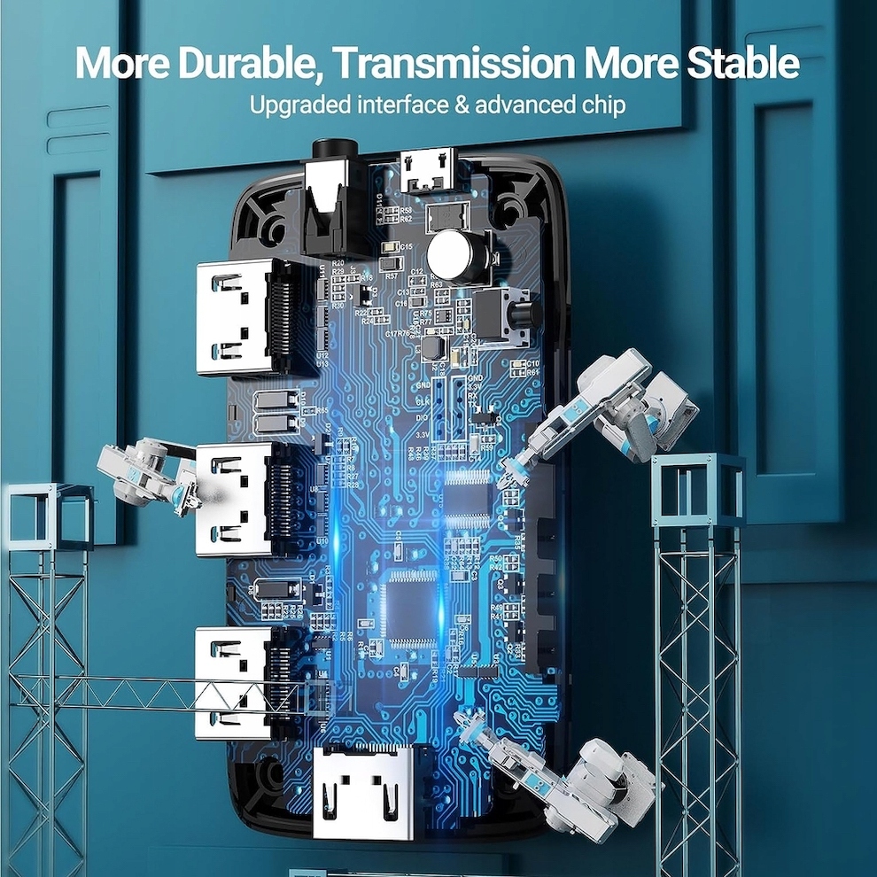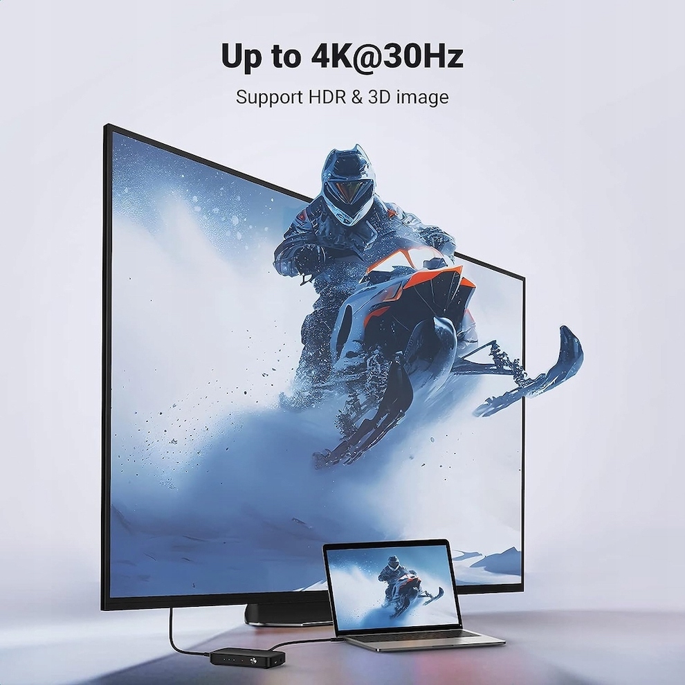 Завдяки декількох портів CM332 Ви можете підключити більше пристроїв. Перемикач підтримує роздільну здатність 4K і не потребує додаткового джерела живлення.