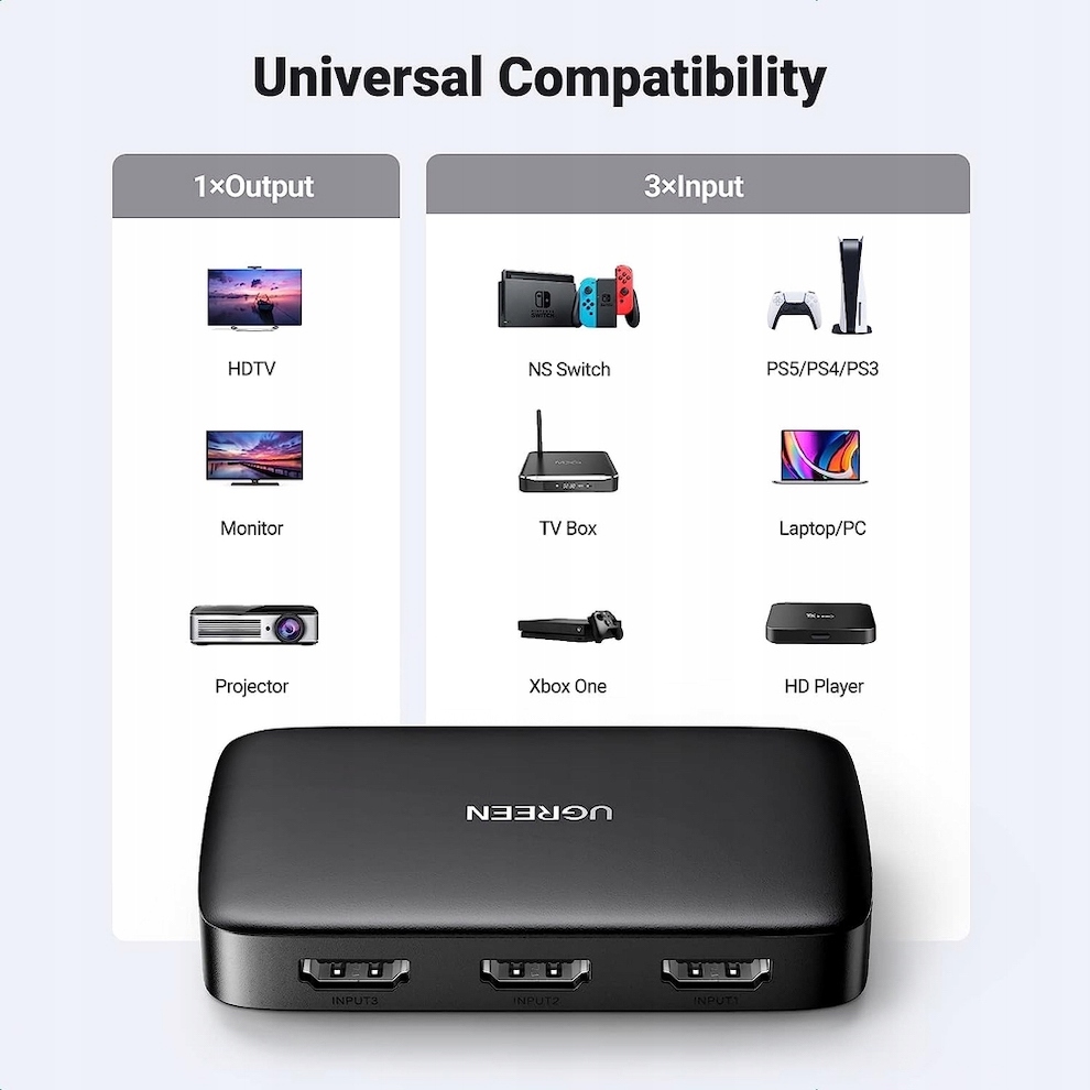 Просматривая «Ugreen CM332 переключатель переключателя 3IN1 HDMI 3 x 1 4K 30 Гц + пульт дистанционного управления», вы можете быть уверены, что данный товар из каталога «[rubrica_name]» будет доставлен из Польши и проверен на целостность. В цене товара, указанной на сайте, учтена доставка из Польши. Внимание!!! Товары для Евросоюза, согласно законодательству стран Евросоюза, могут отличаться упаковкой или наполнением.