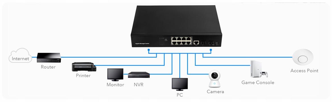 - 8 ports 10/100/1000 Mb/s Auto-Nagotiation, Auto-MDI/MDIX provides intelligent switching between 10 Mb/s, 100 Mb/s and 1000 Mb/S
