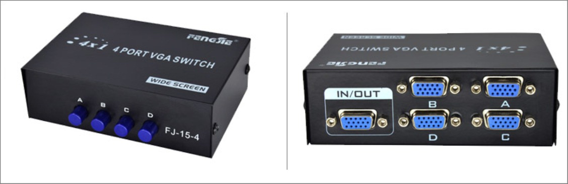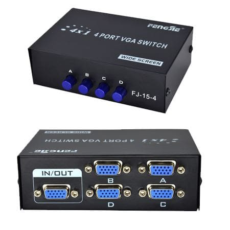 Switch VGA 4 x 1 — це високоякісний продукт, який дозволяє підключити 4 комп’ютери до одного монітора або розділити сигнал VGA на 4 зовнішні приймачі та переглядати зображення на 4 моніторах не одночасно.