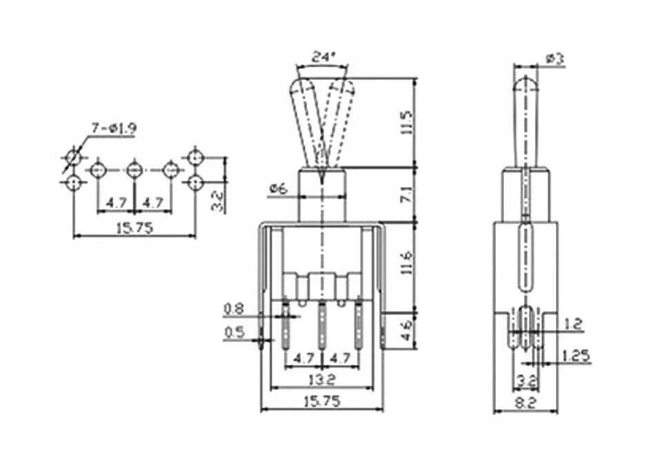 Перемикач вмикач (увімкнено) SPDT 3P Switch Одиночний MTS-112-A2T, MTS112 PRINT