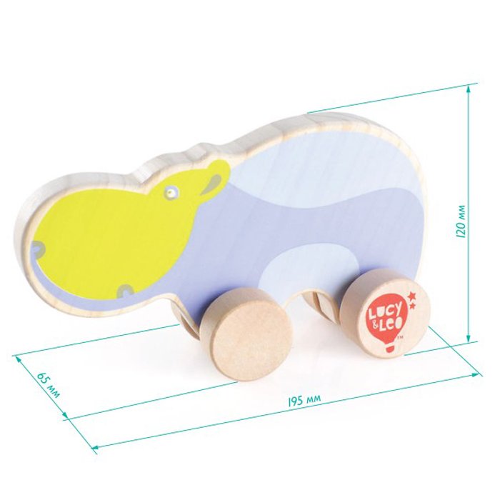 ДЕРЕВ'ЯНИЙ БЕГЕМОТ НА МОДУЛЦІ, ДЛЯ СЯГНЕННЯ, РУХОВА ІГРАШКА-СТРИМКА