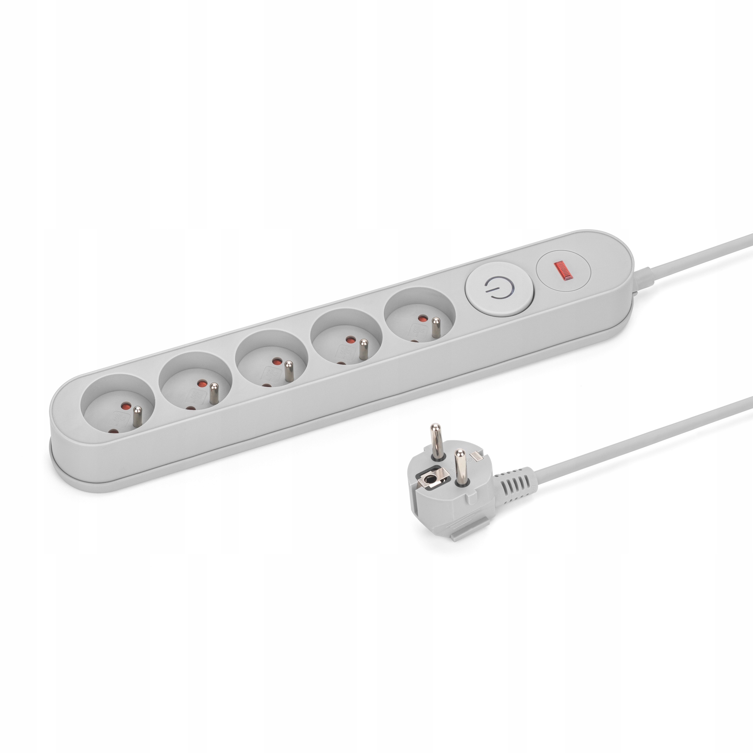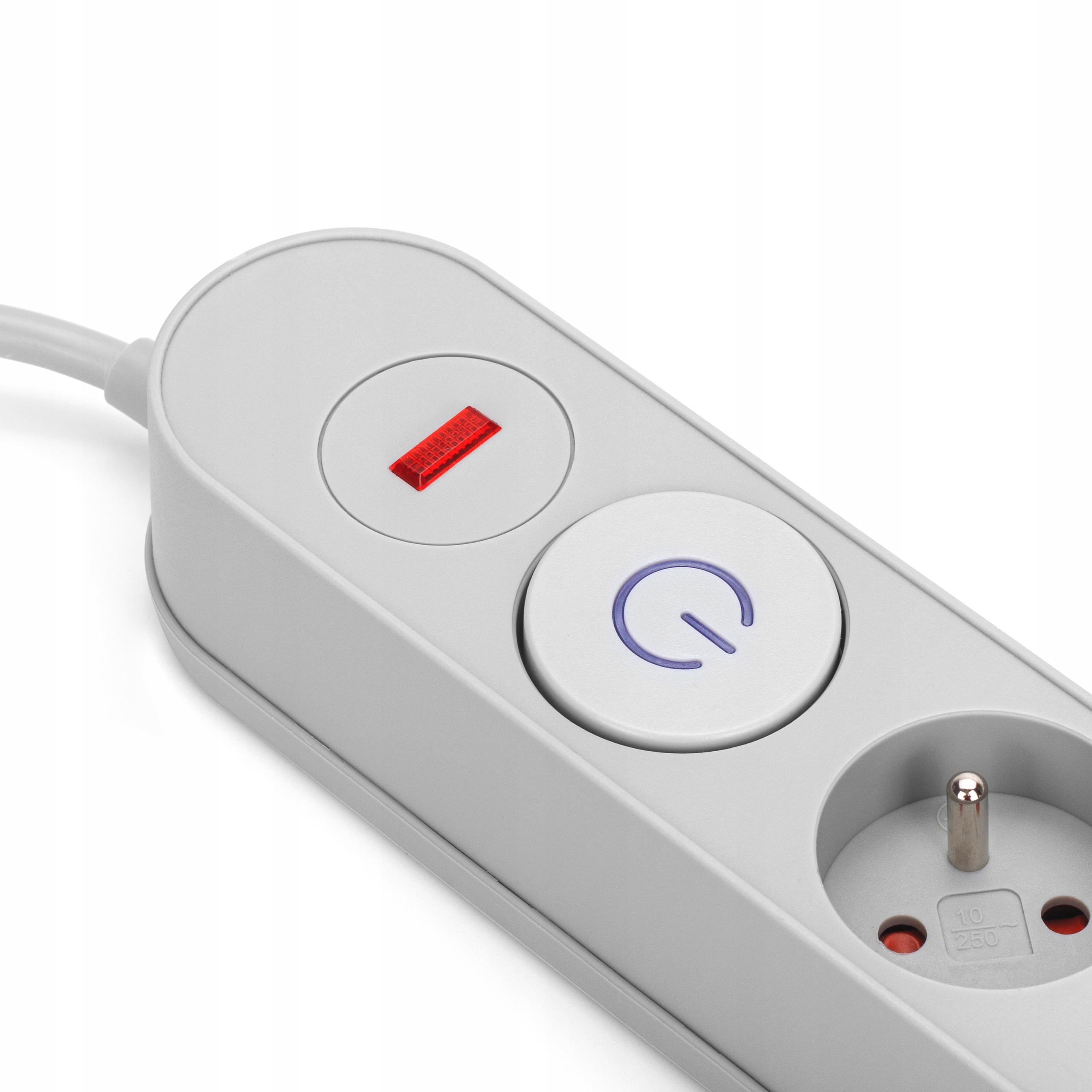 5-річна смуга сплеску у відтінку сірого забезпечує захист ваших електронних пристроїв від перенапруг до 2 кВ, реагування менше ніж за 25 наносекунд . у 5-метровому кабелі. Він має освітлений перемикач, який полегшує управління потужністю.