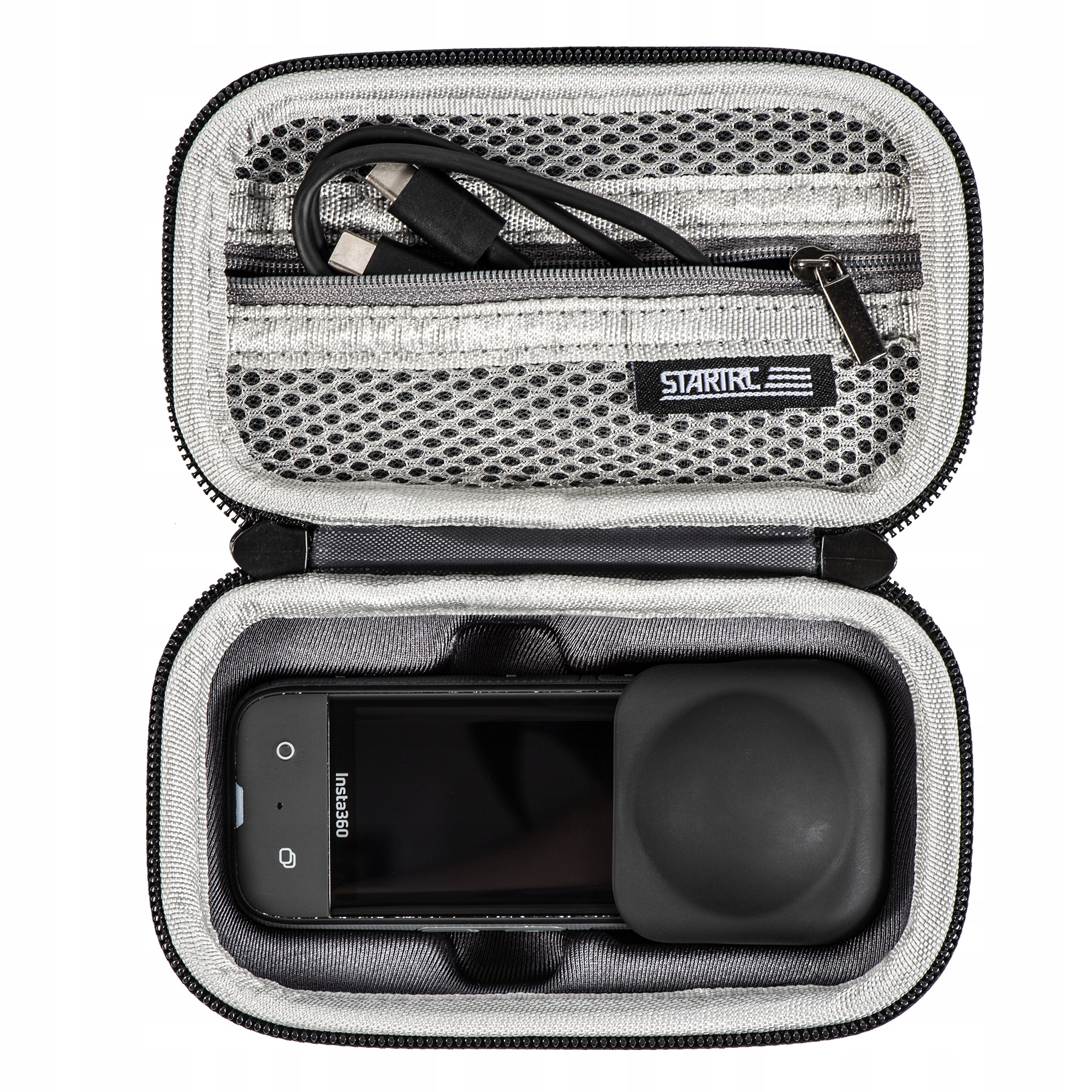 【Зручний дизайн】 Ручний дизайн захищає Insta360 X3 у зручній компактній упаковці. Сітчаста кишеня на блискавці збільшує простір для зберігання кабелів та інших аксесуарів.