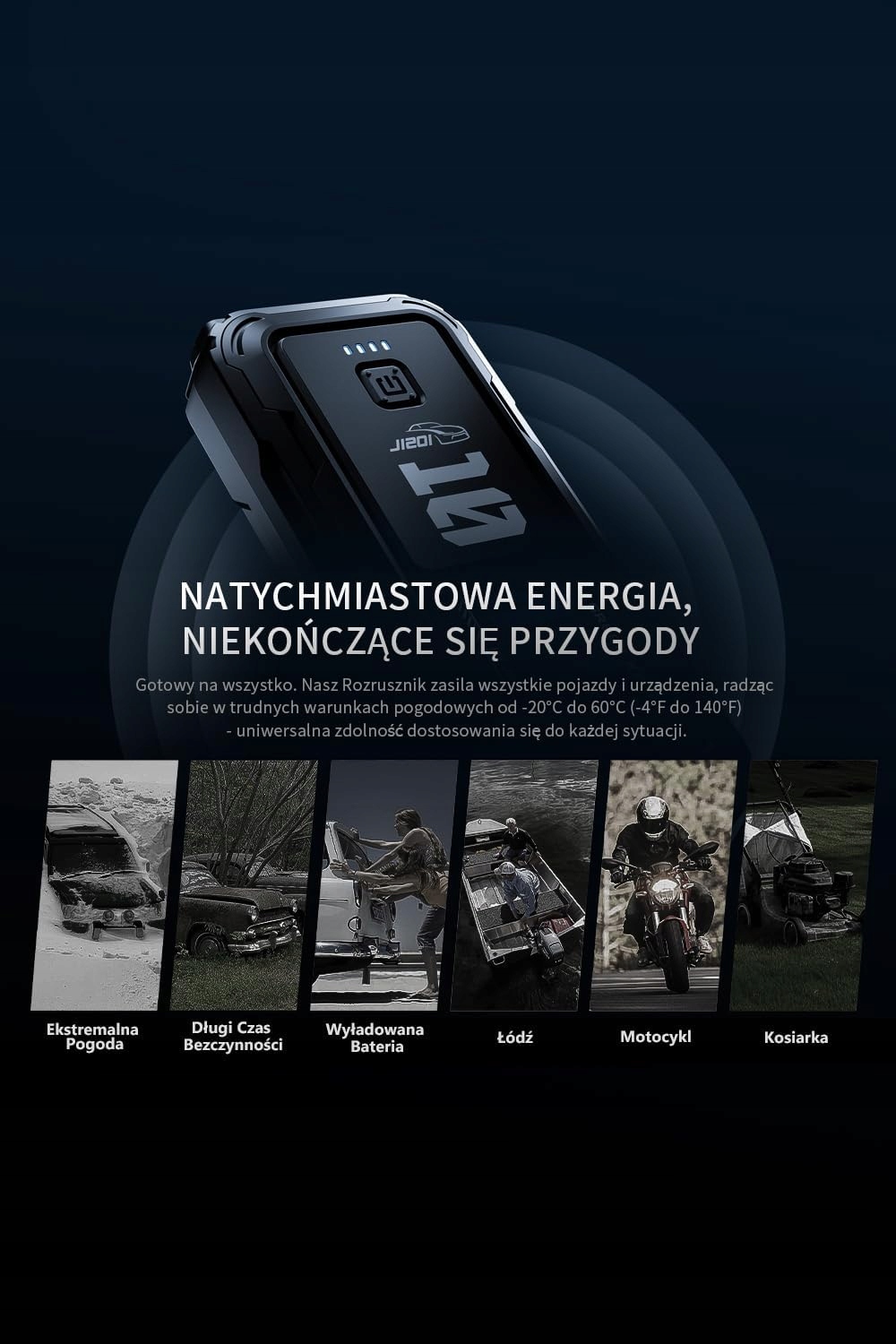 - Портативний старт -up PowerBank: компактний, але твердий, зелений кепер PowerBank -це ваше портативне рішення для аварійного акумулятора. З розмірами 192,1 × 89,2 × 39,1 мм він легко вписується в автомобільний відсік або мішок для подорожей, готовий до несподіваного розряду акумулятора.