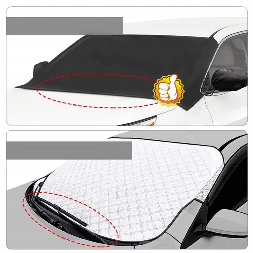 🌧️🌧️🌧️[Високоякісний матеріал] Козирок лобового скла виготовлено з міцного, екологічно чистого матеріалу 210T, який захищає покриття вашого автомобіля від УФ-випромінювання та старіння. Він також стійкий до тепла, розривів, снігу та морозу, що забезпечує додаткове тепло. Захищає ваше лобове скло від несприятливих погодних умов, таких як сніг, лід, мороз, дощ, град, УФ-випромінювання, сонячне світло, опале листя, пташиний послід, пил тощо. Підтримуючи лобове скло в чистоті, ви заощаджуєте час на ковзання льоду в напружені зимові ранки! Забезпечує тепло взимку та захист від сонця влітку - вбиваючи двох зайців одним пострілом!