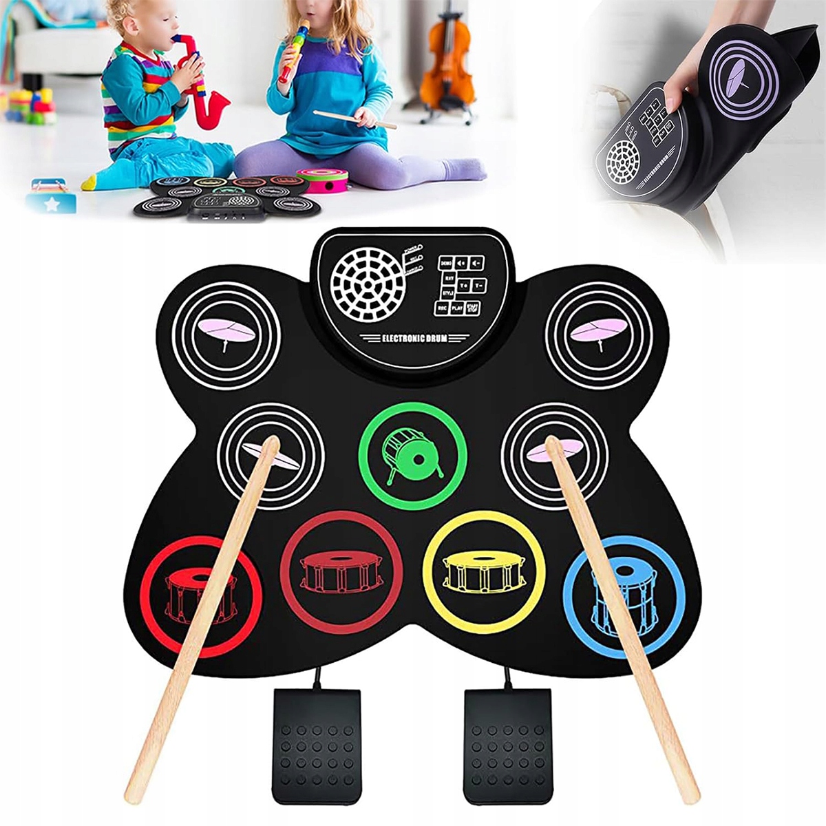 Електронна барабанна установка, електронна барабанна установка з 9 барабанними педами, портативна силіконова барабанна установка з вбудованими стереодинаміками, чудовий подарунок на день народження для дітей