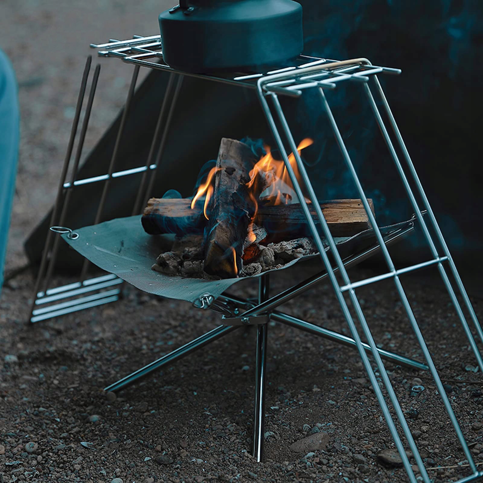 СТАБІЛЬНА КОНСТРУКЦІЯ: вогнева яма оснащена згорнутою сіткою з нержавіючої сталі та складними ніжками для легкої установки та стабільності. Хрестоподібна конструкція, утворена чотирма трубками з нержавіючої сталі, забезпечує міцну та надійну основу, запобігаючи нахилу або хитанню бака під час використання. Завдяки максимальному несучому навантаженню 5 кг/11,0 фунтів він може витримати вагу дров та інших матеріалів.