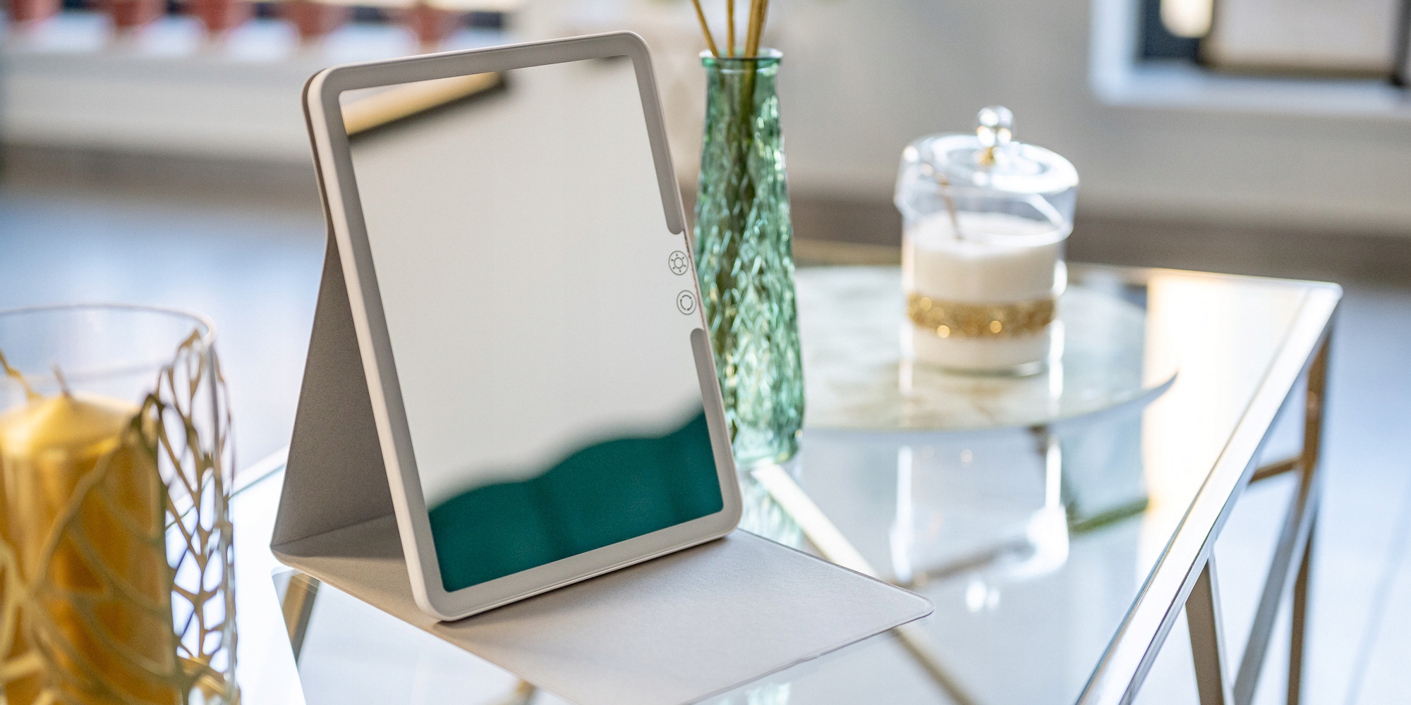 Дзеркало для макіяжу Humanas HS-ML02 — ідеальний вибір для людей, які цінують незалежність, компактні розміри та ультрамобільність. Його тонкий дизайн, схожий на планшет, поміститься в будь-яку валізу, рюкзак або сумку для ноутбука. Незалежно від того, де ви вирішите робити макіяж, світлодіоди забезпечать рівномірне і м'яке освітлення вашого обличчя. Ви також можете легко налаштувати яскравість і колірну температуру світла відповідно до своїх потреб. Ергономічна складна підставка, яка одночасно виконує роль захисного чохла, дозволяє вільно розміщувати конструкцію на рівній поверхні. Купуючи дзеркало Humanas HS-ML02, ви обираєте не тільки функціональність, а й стиль і відмінну якість.