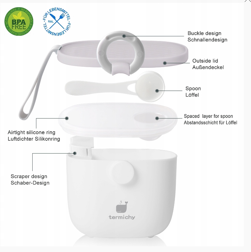 - Широке застосування: коробка для зберігання сухого молока має велику місткість 500 мл. Також можна використовувати як контейнер для зберігання харчових продуктів, чашку для закусок для печива та горіхів.
