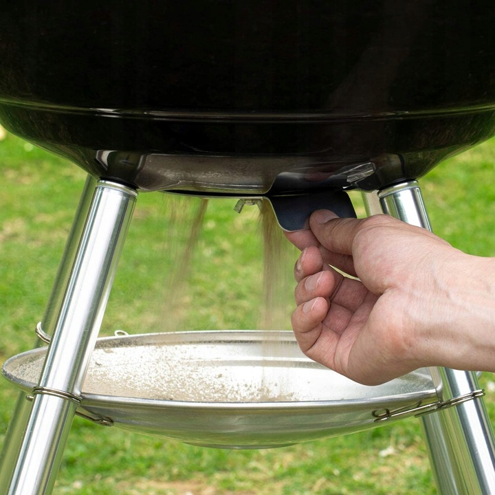 У грилі, прямо під основною чашею, є полиця - Зольник. Завдяки ковзний замок b> ми можемо будь-коли висипати золу в зольник, щоб легко його викинути - без необхідності використовувати лопату або піднімати всю решітку, щоб вилити золу з основної чаші.