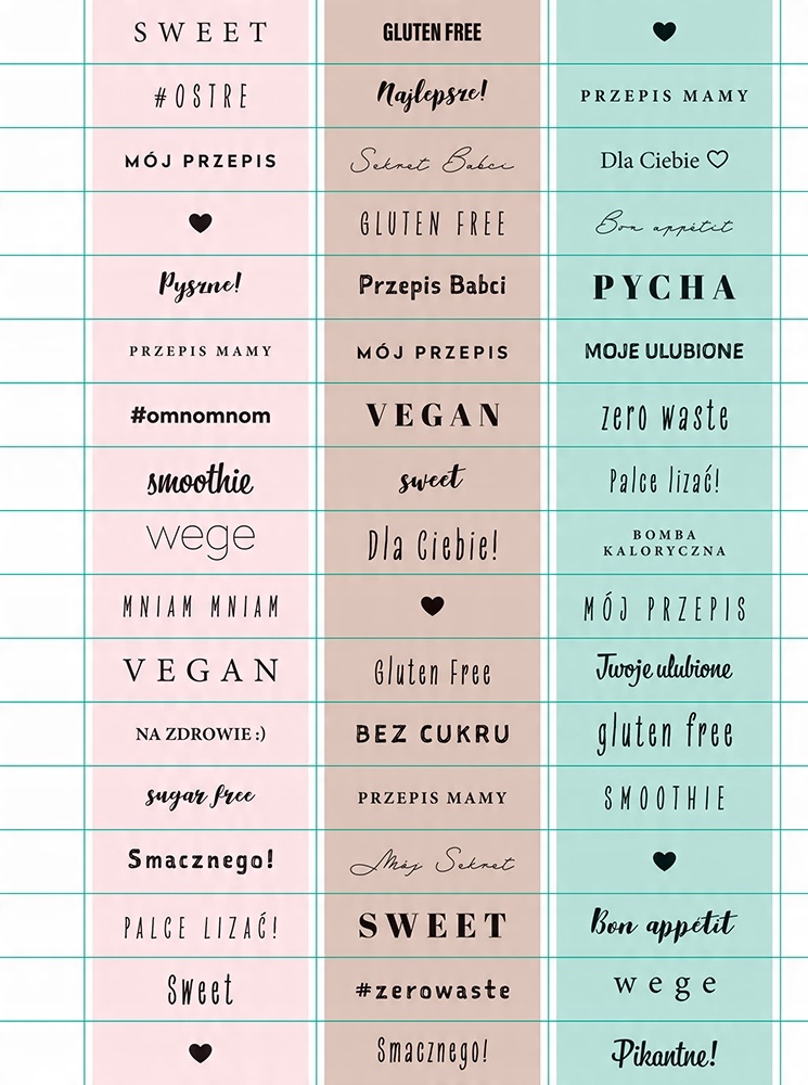 - понад 90 наклейок для наклеювання та прикраси рецептів