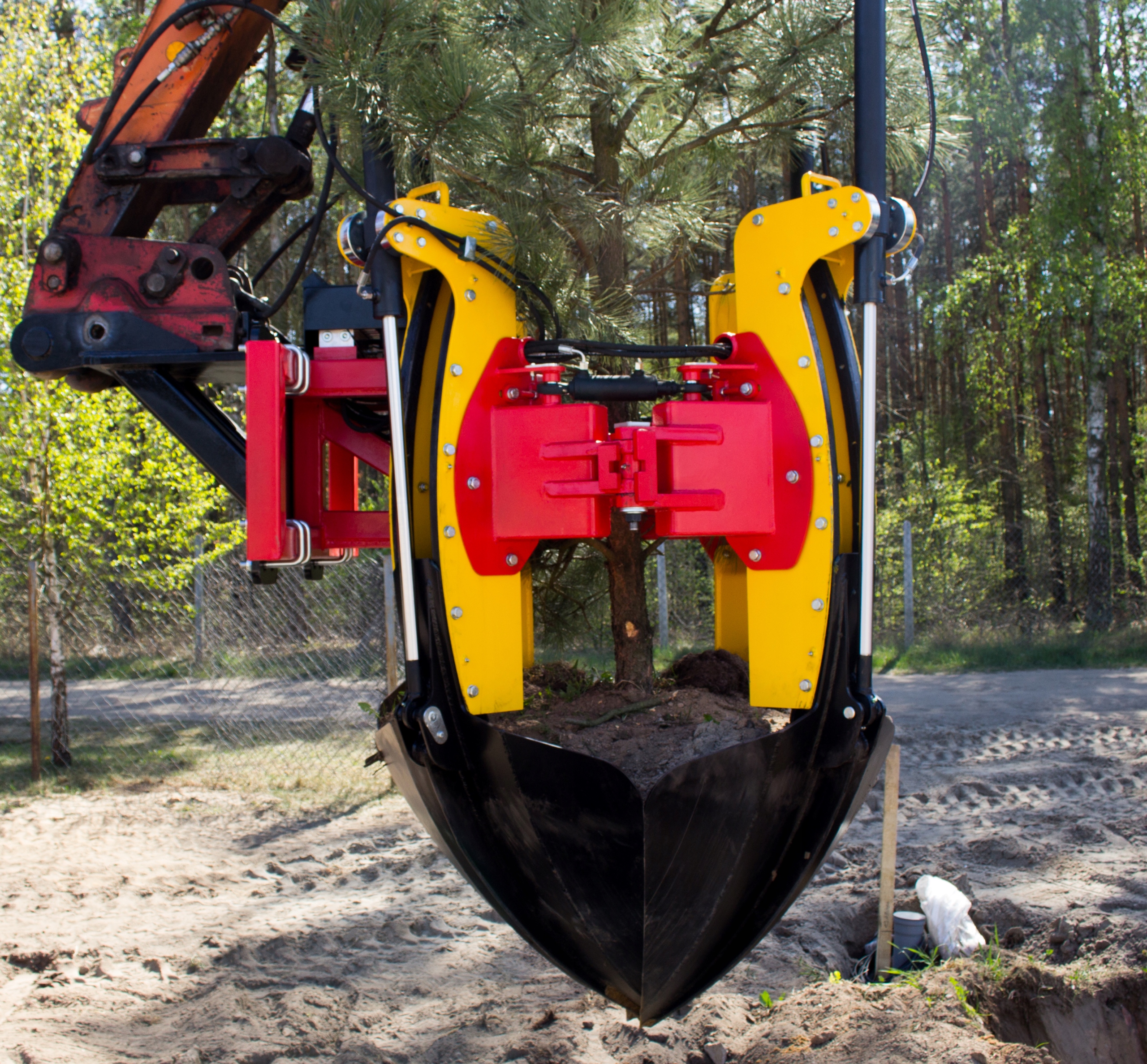 Пересаджувач дерев та кущів на екскаватор-навантажувач