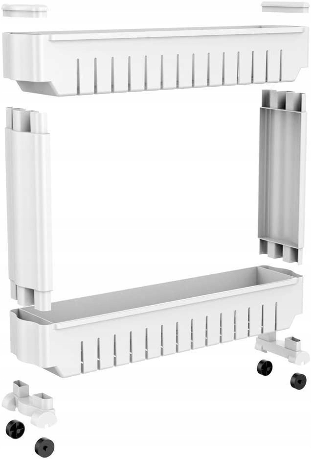 Полиця була розроблена для використання вузьких просторів, напр. між холодильником і шафою або між пральною машиною і шафою. Полиця має 5 глибоких полиць, які дозволять розмістити багато речей, наприклад, кухонне приладдя, пляшки, спеції. Він також чудово підійде як полиця для ванної кімнати для косметики, паперу, рідин або порошків. Використання 4 коліщаток дозволить легко і швидко переміщати полицю.