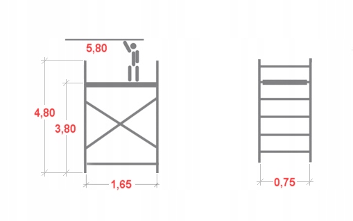 - Складні будівельні риштування (модуль 1) можна легко та швидко трансформувати в пересувні риштування з робочою висотою 3,8 м (модуль 1+2) або (1+2+3) з робочою висотою 5,8 м або 7,8 м (1+2+3+3)