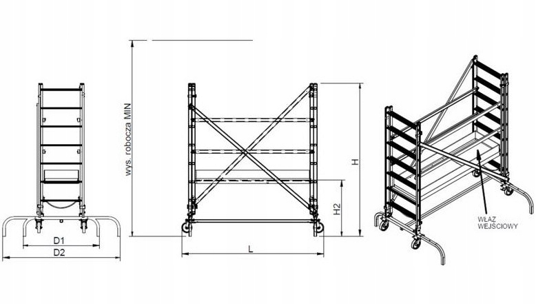 Мала вага риштувань завдяки алюмінієвій конструкції.