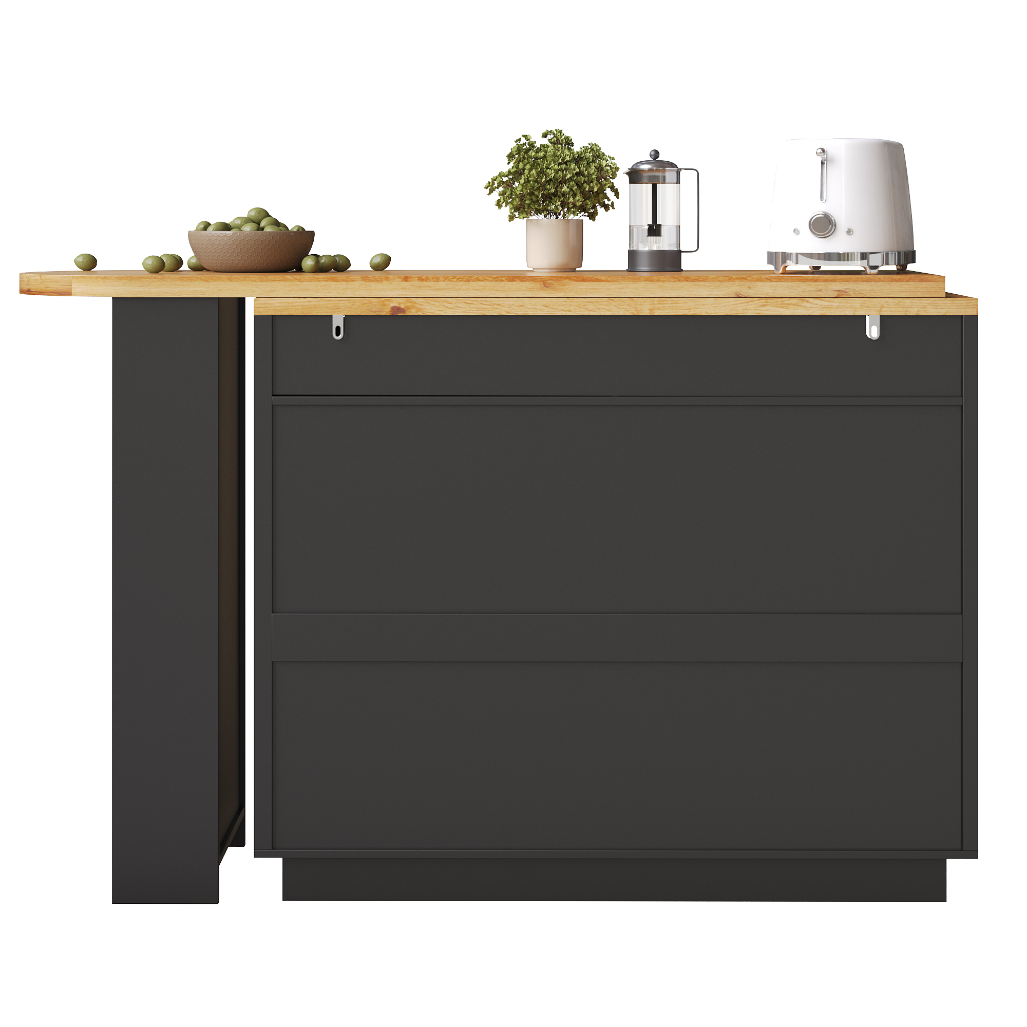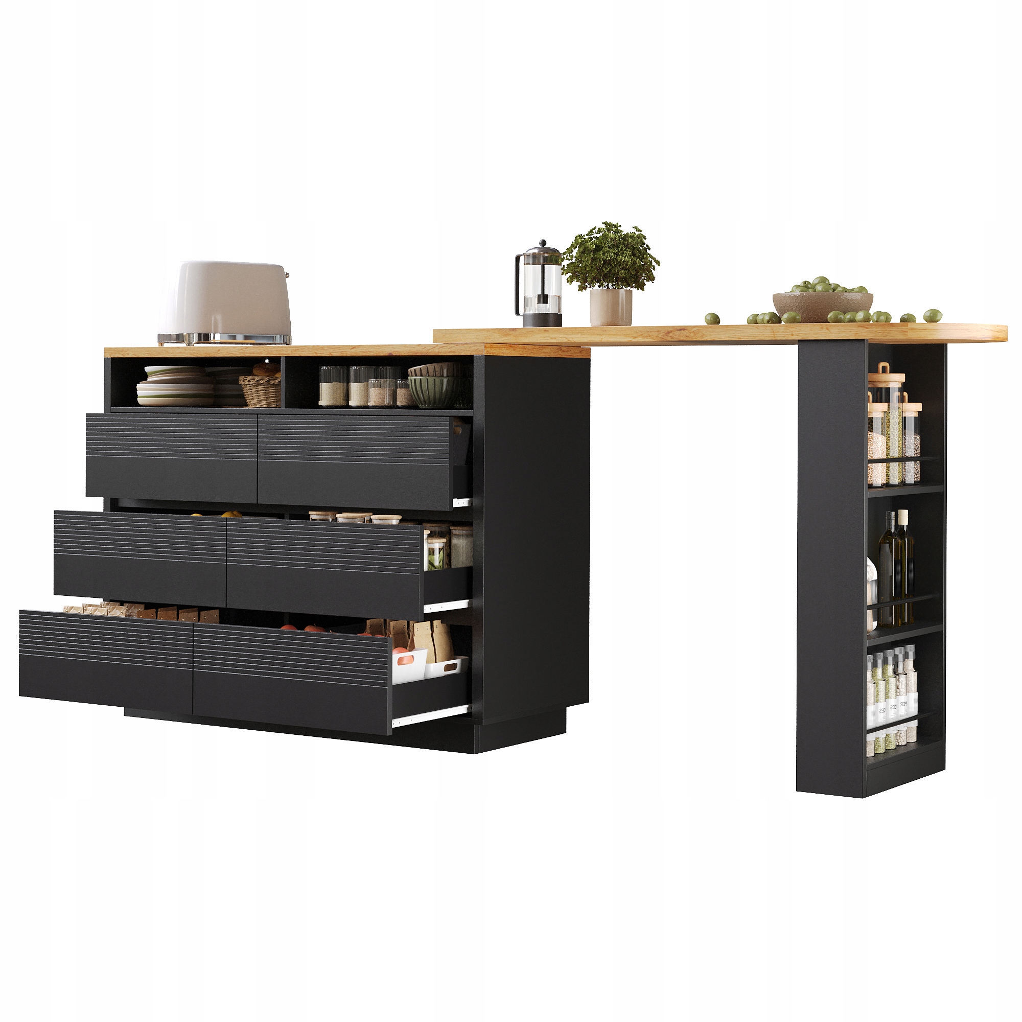 Пересувний чорний барний стіл – телескопічний 137-215 см + ящик + полиці