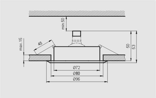 Рухомий світильник врізний в стелю, виготовлений з пресованого сталевого листа. Дозволяє точкове освітлення просторів і предметів.