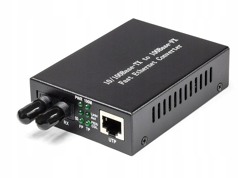 Перетворювач дозволяє змінити стандартний STP/UTP Twisted: Multi -Mode Optical Fiber. У ньому є одна подвійна розетка з волокон і одна розетка RJ45. Світлодіодні індикатори дозволяють легко контролювати та моніторинг роботи.