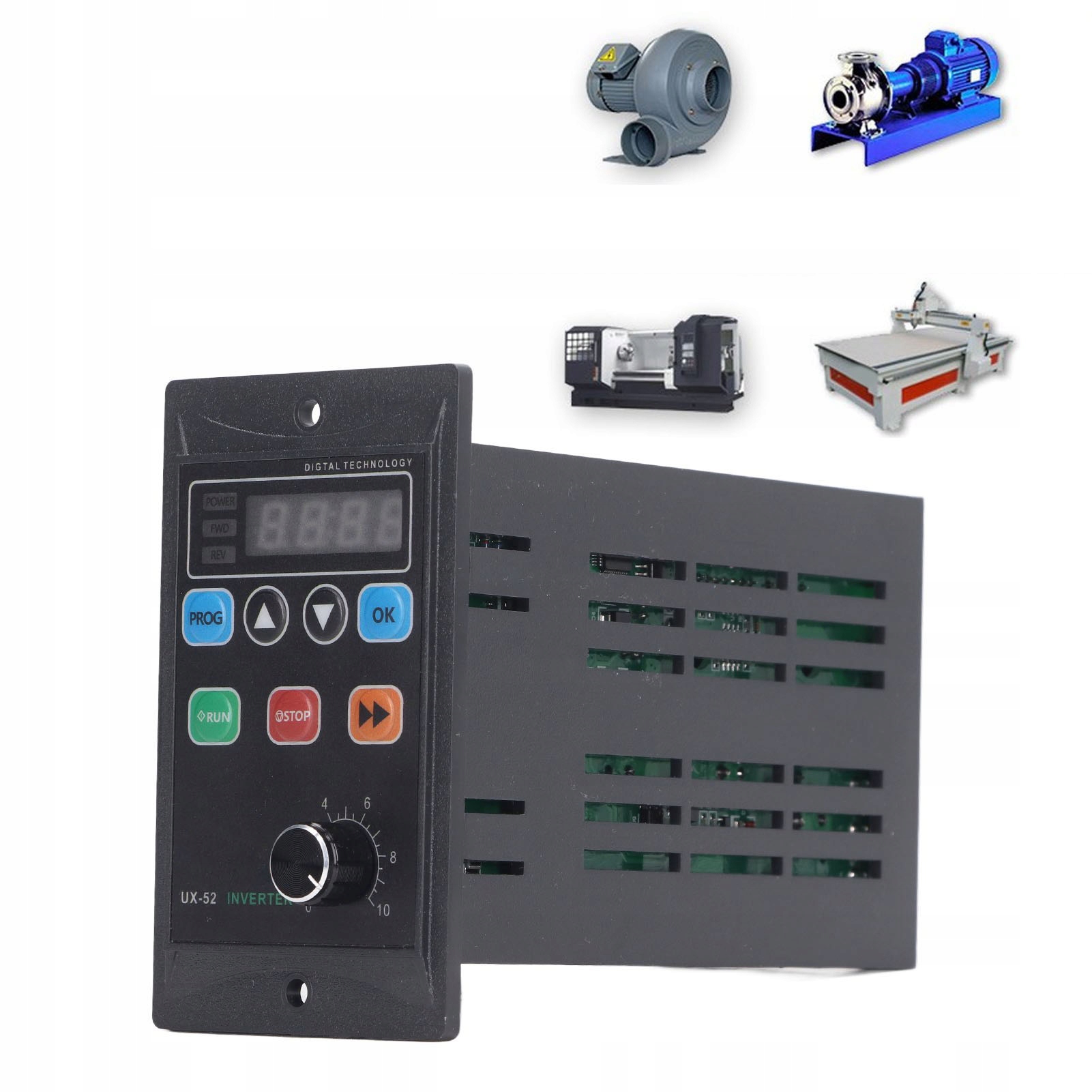 5. ЗАСТОСУВАННЯ: Цей інвертор має невеликий розмір і великий поворот, підходить для двигунів, вентиляторів, водяних насосів, автоматичних верстатів, гравірувальних машин тощо.