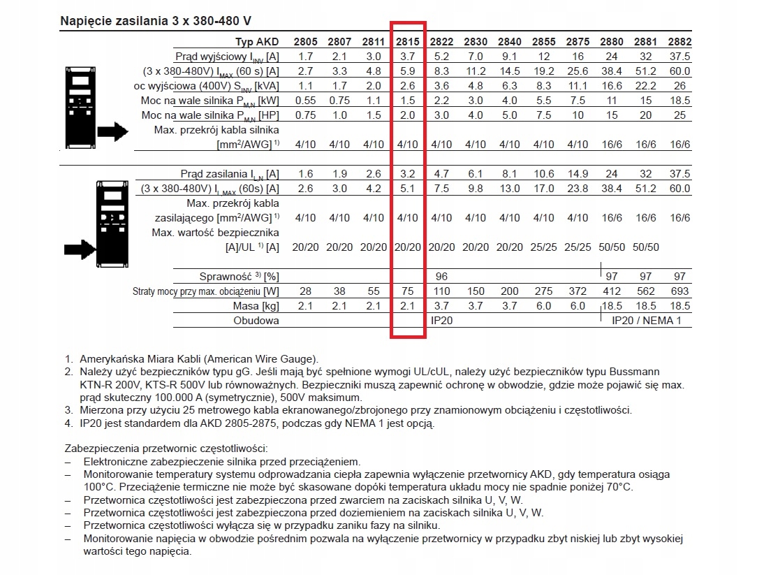 - Напруга живлення AKD 2805-2882 380-480V - 3 x 380/400/415/440/480 В ± 10%