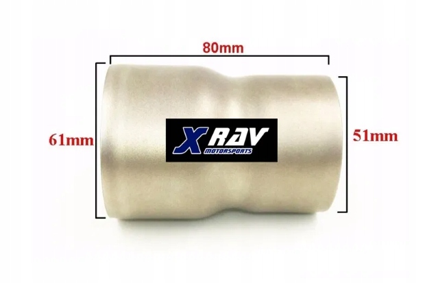 Редуктор для підключення мотоциклетних вихлопів діаметром 51 мм до мотоциклів діаметром близько 61 мм.