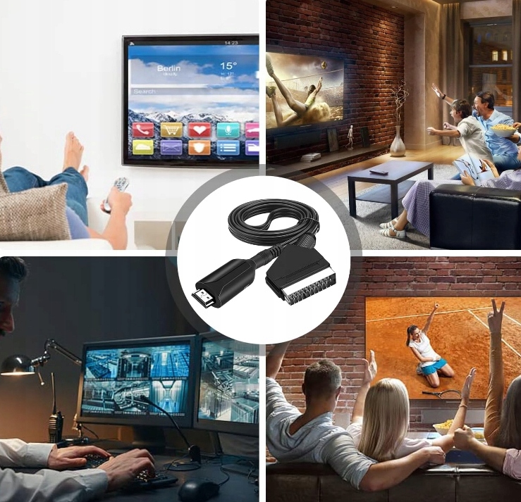 перетворювач HDMI в Scart перетворює відео -сигнали HDMI або аудіо -сигнали в складені відеосигнали Scart, а також підтримує бічні сигнали системи DVI. Це допомагає користувачам перетворити високоякісні відео -сигнали HDMI у стандартний Scart (стандартна роздільна здатність 480i, 576i).