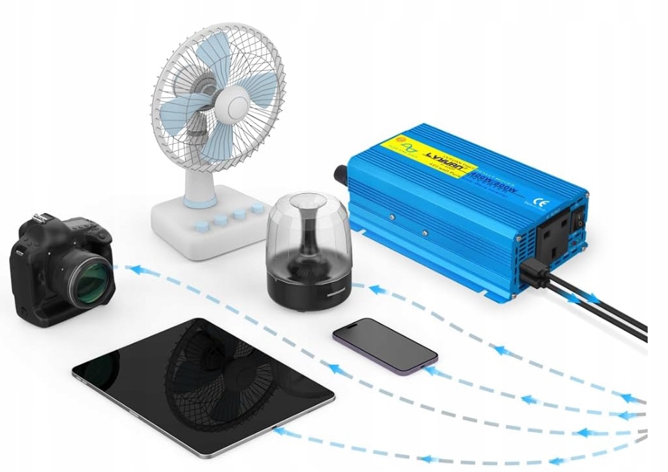 Перетворюйте напругу 12 В постійного струму в чисту напругу змінного струму 230 В завдяки конвертеру LVYUAN із чистою синусоїдою. Ідеально підходить для заряджання ноутбуків, телевізорів, ігрових консолей, вентиляторів, різдвяних вогнів і багатьох інших пристроїв під час подорожей, кемпінгу, роботи в майстерні або в екстрених ситуаціях. Вбудовані 2 порти USB дозволяють швидко заряджати смартфони та планшети.
