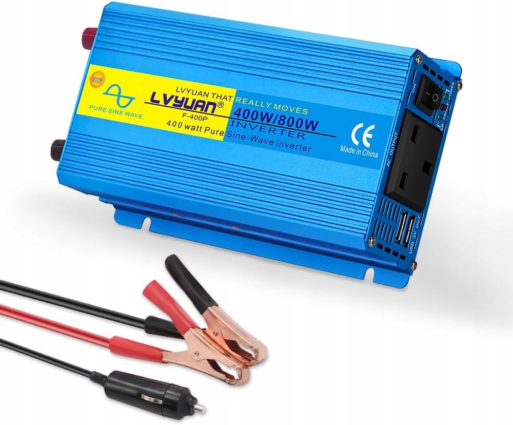 Інвертор потужності LVYUAN 400 Вт/800 Вт з чистою синусоїдальною хвилею | 12 В постійного струму → 230 В змінного струму + 2x USB