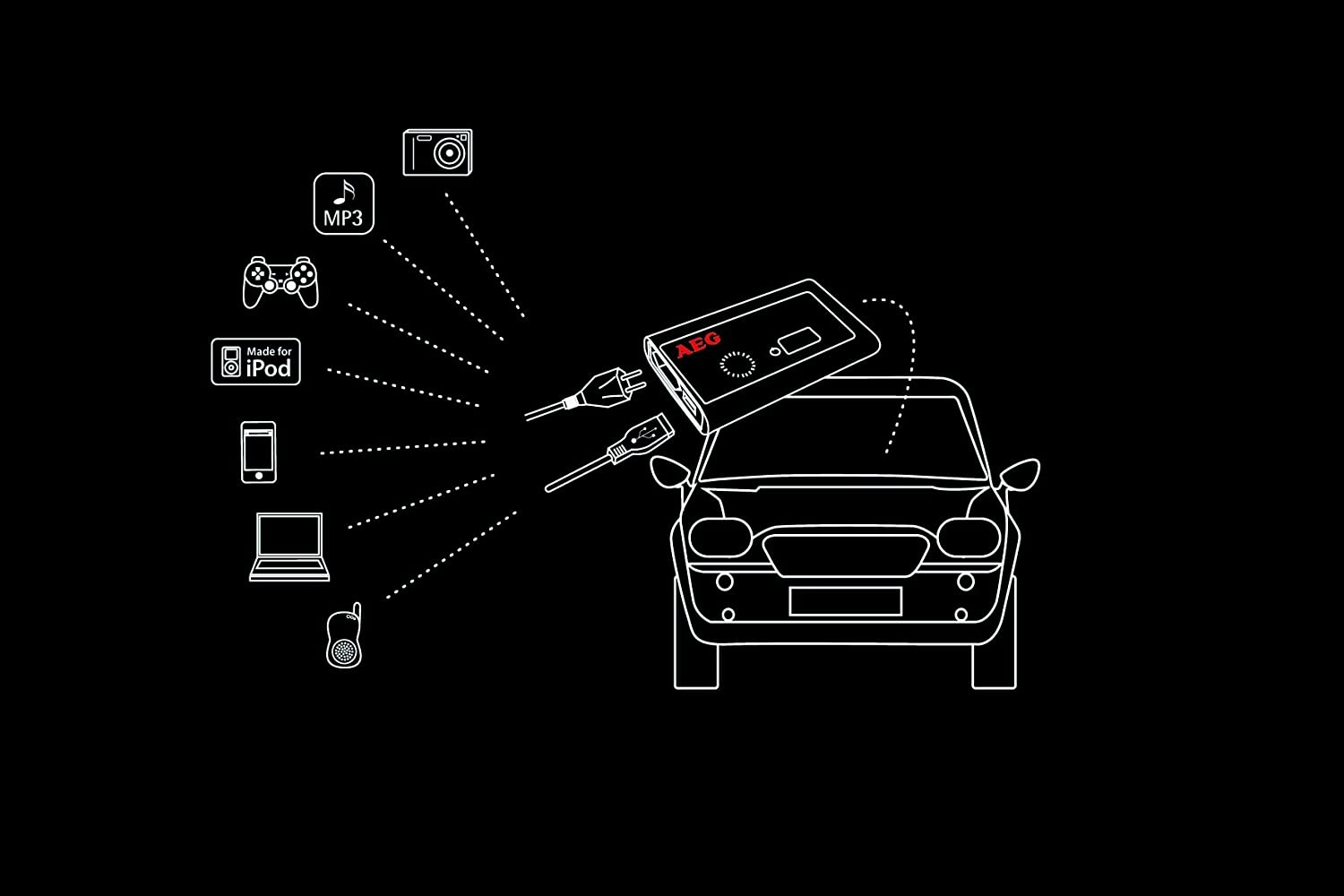 ✅ Перетворювач кишенькової напруги AEG служить мобільною заміною для електричного виходу вдома - домашній струм в машині.