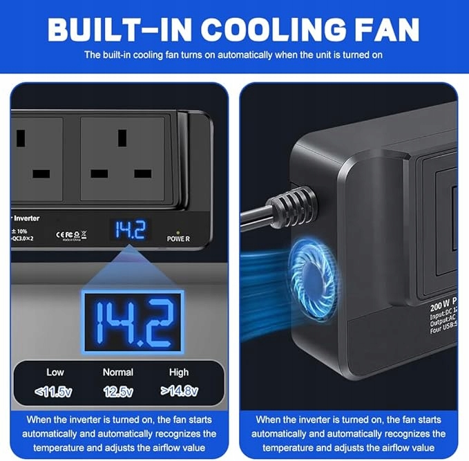 - Цифровий РК -дисплей: Після підключення напруги автомобіля до перетворювача напруги автомобіля він відображає напругу введення акумулятора. Ви можете стежити за напругою в режимі реального часу та допомогти визначити, чи напруга знаходиться в нормі. Автомобільний перетворювач також має додаткову кнопку перемикання/вимкнення для ефективного захисту пристрою та розетки. Кабель адаптера завдовжки 75 см, що полегшує підключення та використання. З світлодіодом індикатор світить зеленим під час роботи. 4 , спортивні машини тощо, оснащений плагіном легшого на автомобілі, він може бути підключений майже до будь -якого транспортного засобу, що є ідеальним вибором під час ділових поїздок, турбуючи, Довгі подорожі та інші можливості.